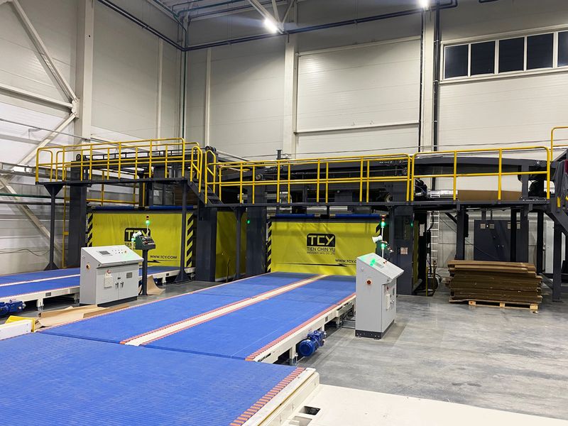 Решения: установлены префидеры для подачи заготовок на линию переработки и плоского пресса, а также транспортные конвейеры и брейкер, что позволило улучшить производительность и уменьшить количество ручных операций.