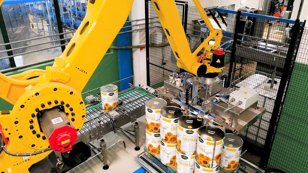 Предназначен для снятия продукции с паллет (депаллетизации). Он использует многофункциональную «руку», которая программируется для выполнения движений в разных направлениях, позволяя эффективно извлекать ящики, коробки, мешки или другие типы упаковки с паллет