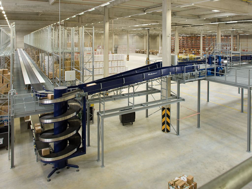 Этот тип конвейеров предназначен для перемещения грузов вниз/вверх. В отличие от роликовых и ленточных аналогов, они занимают минимум места. За один час спиральный конвейер способен поднимать/ опускать до 2,6 тысячи единиц продукции